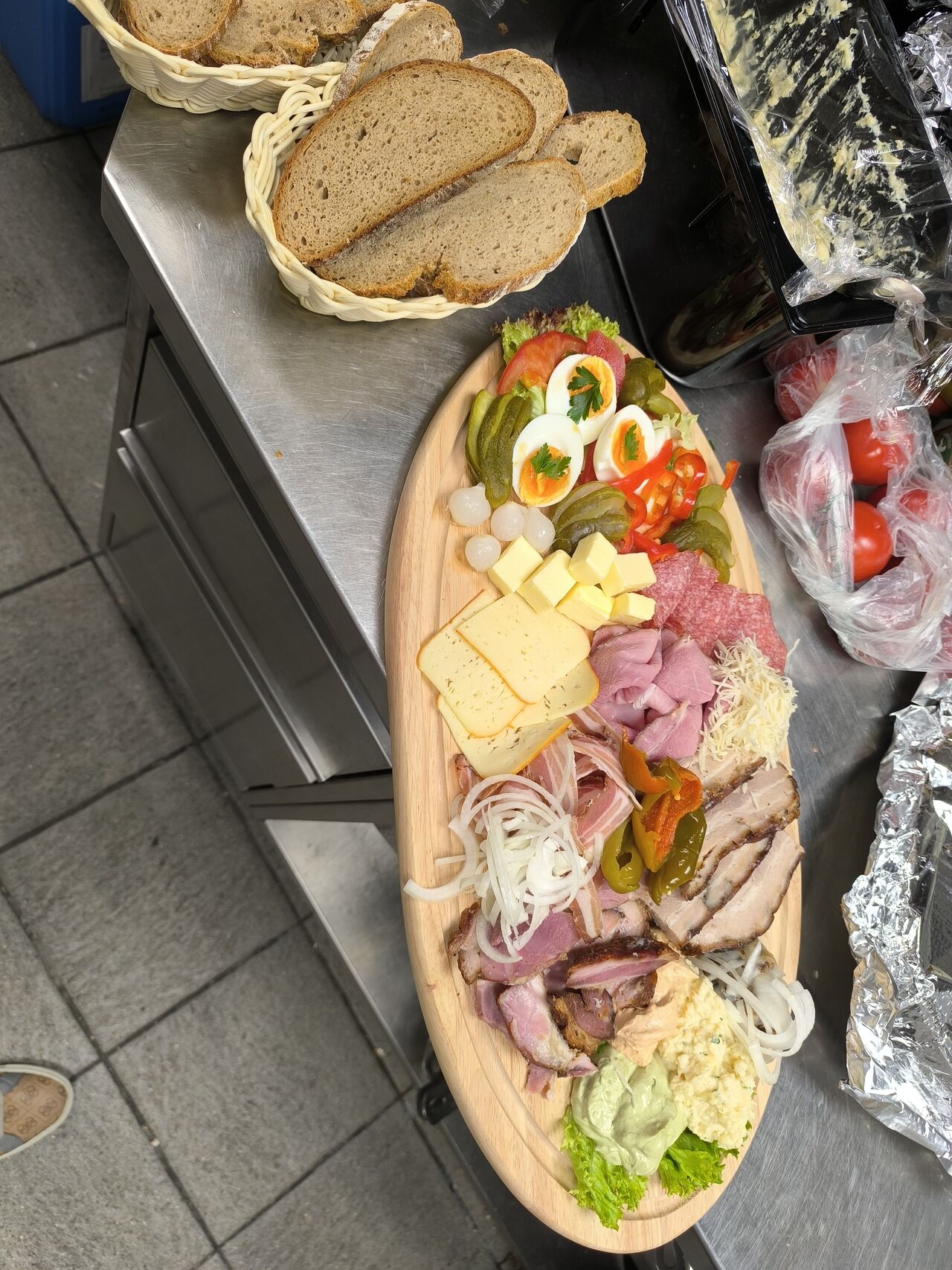 es gibt ein Kaltes Buffet um € 12,50 pP.
